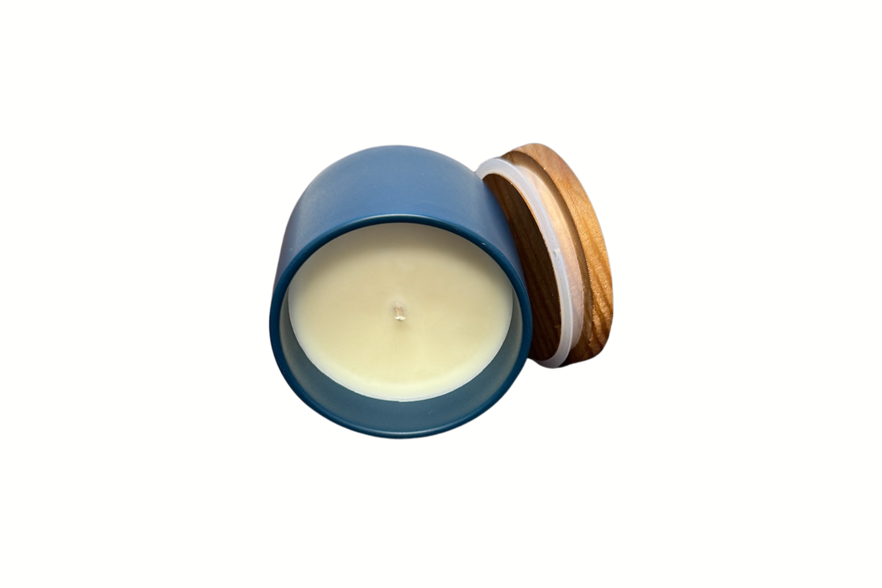 Envuelta en un recipiente de cerámica de color mezclilla, esta vela de 4 oz cuenta con una sola mecha de algodón, lo que garantiza una combustión limpia y uniforme.